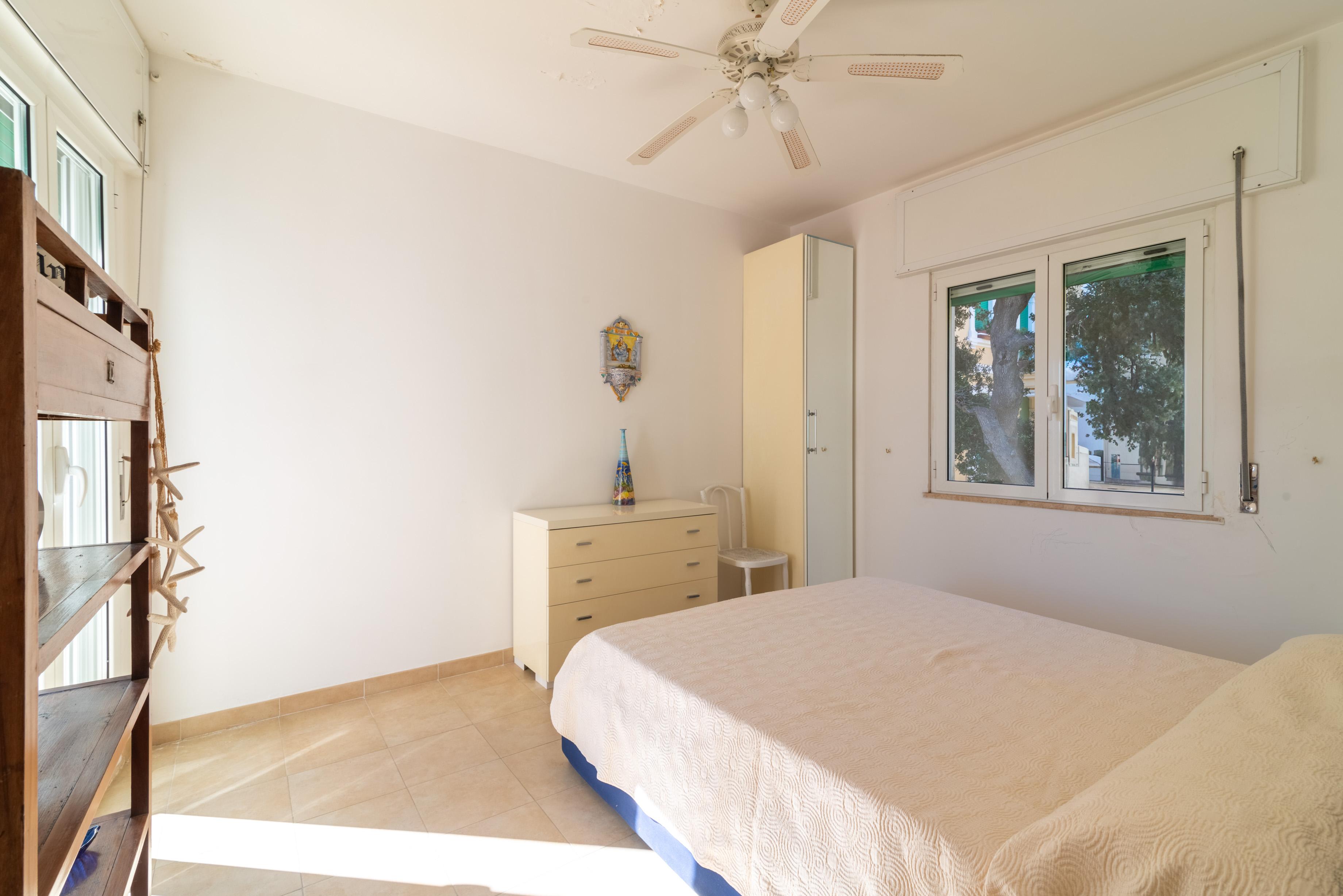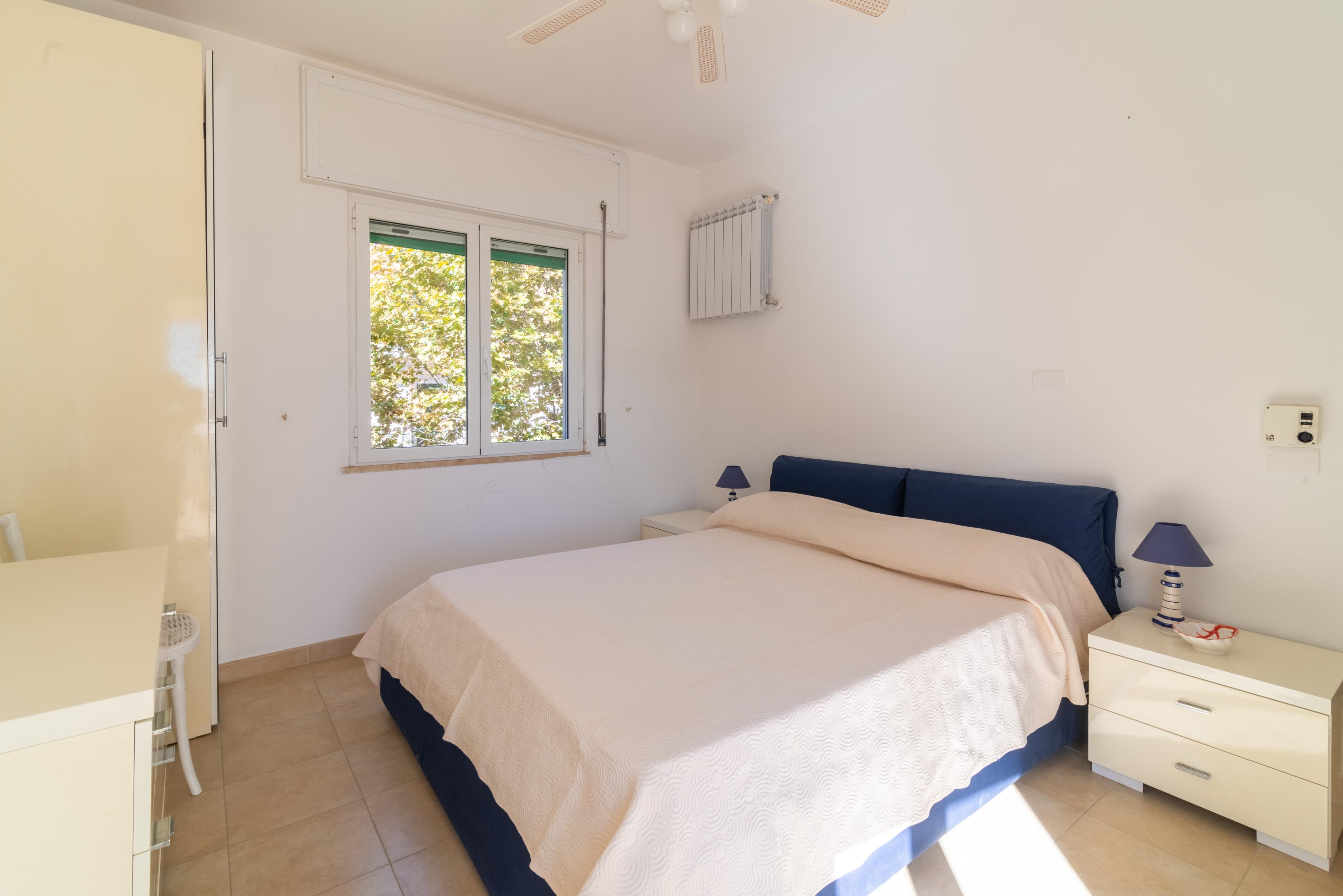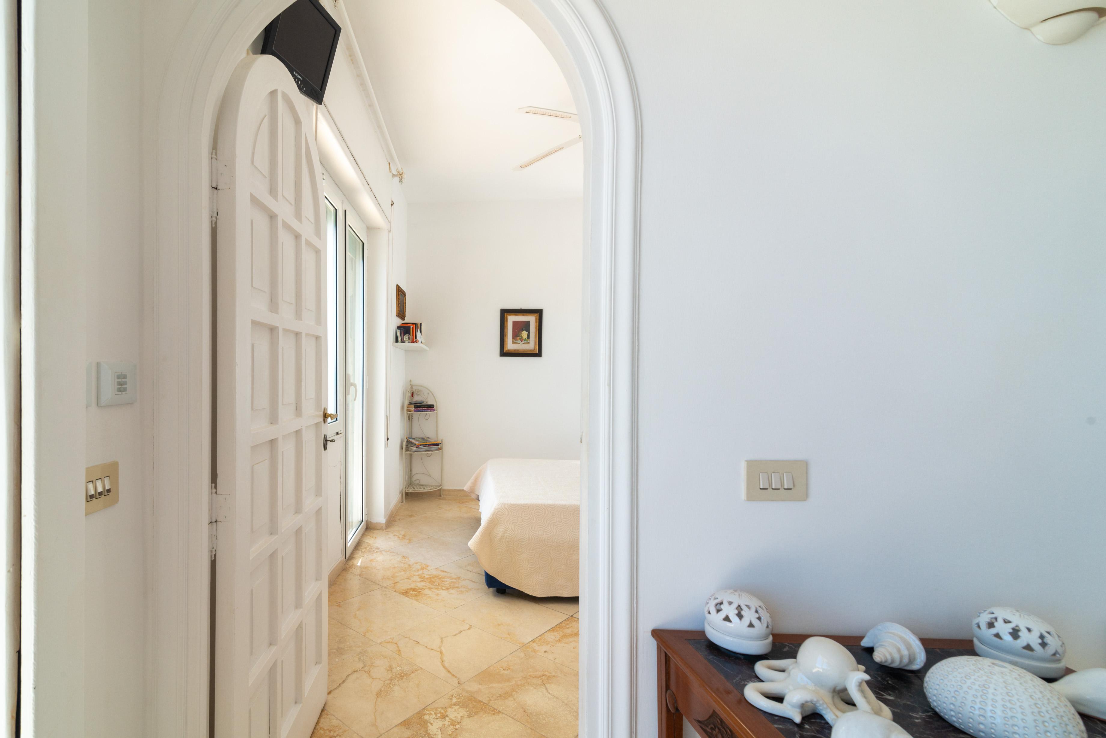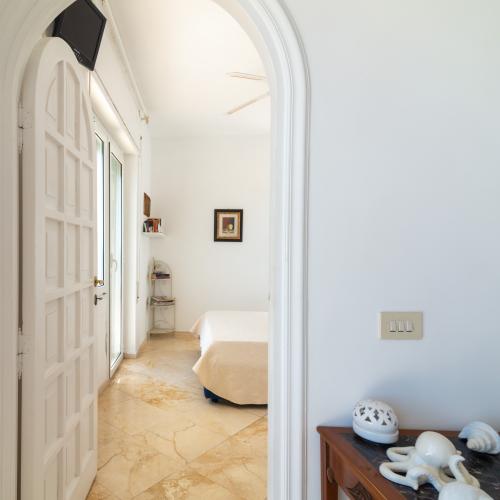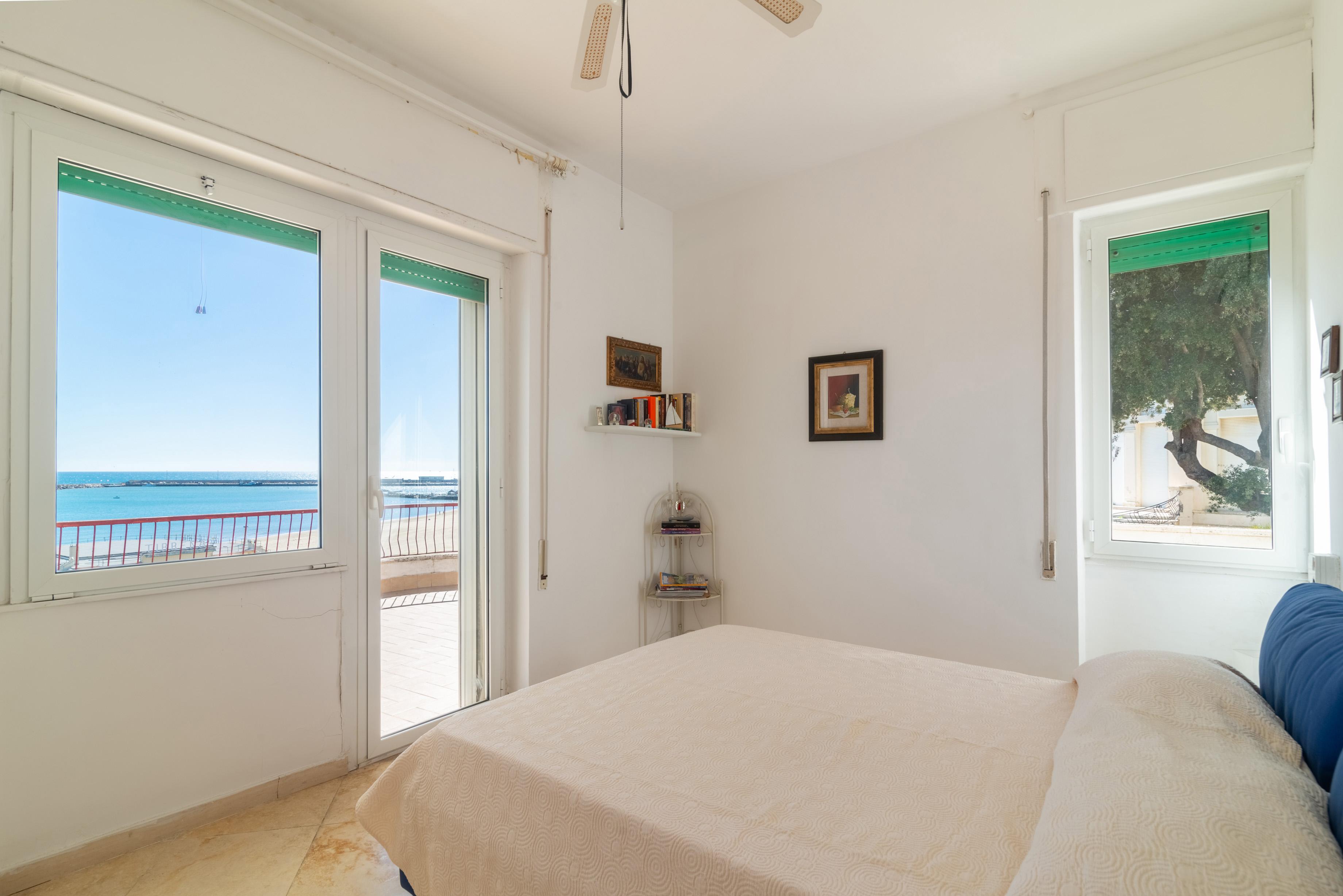 La camera matrimoniale principale, anch’essa munita di accesso all’esterno e di ben altre due finestre di cui una sul mare, ha un disimpegno con armadio e un bagno en suite ad uso esclusivo.