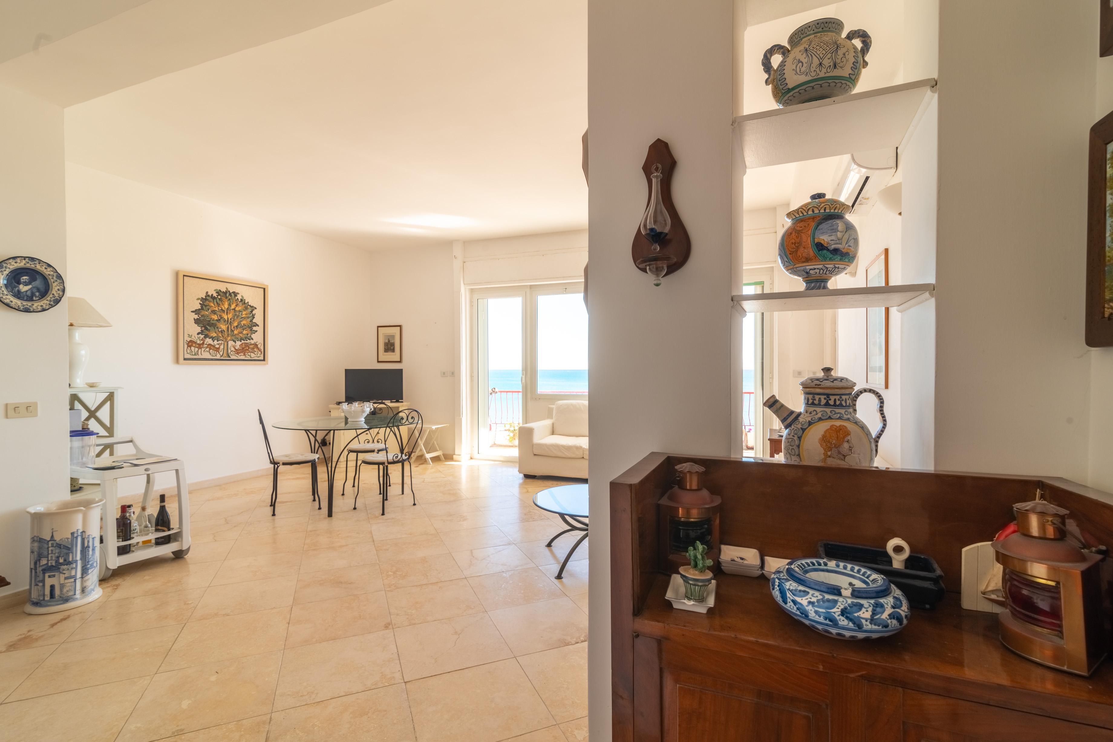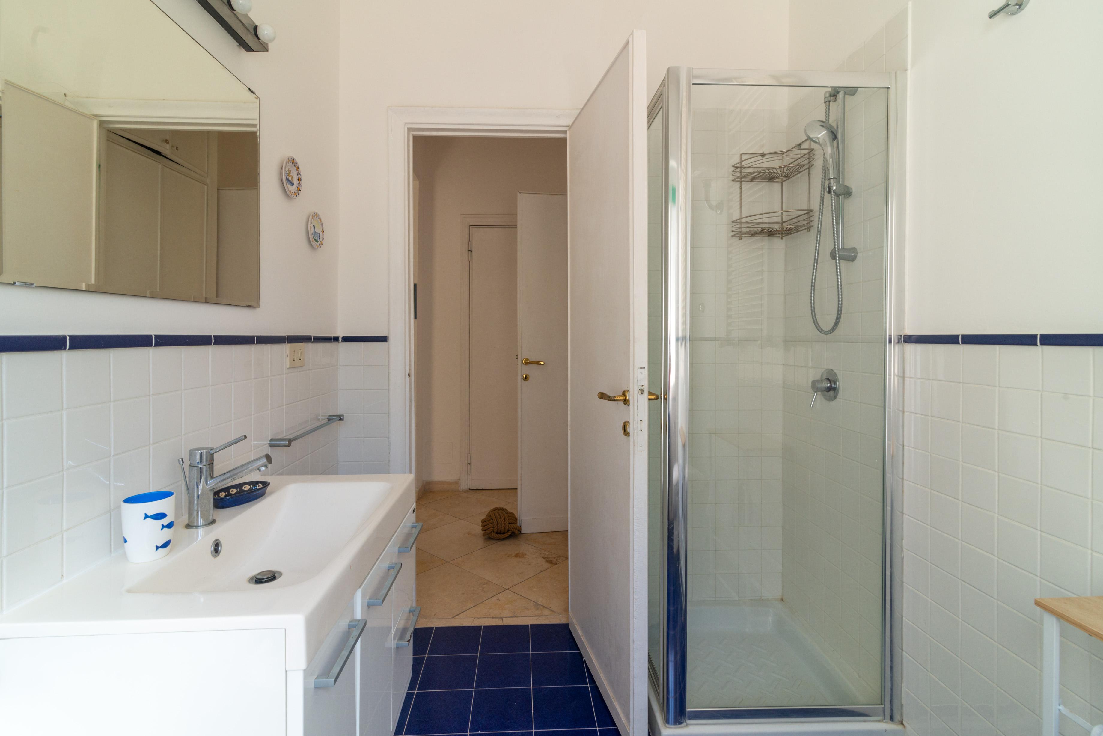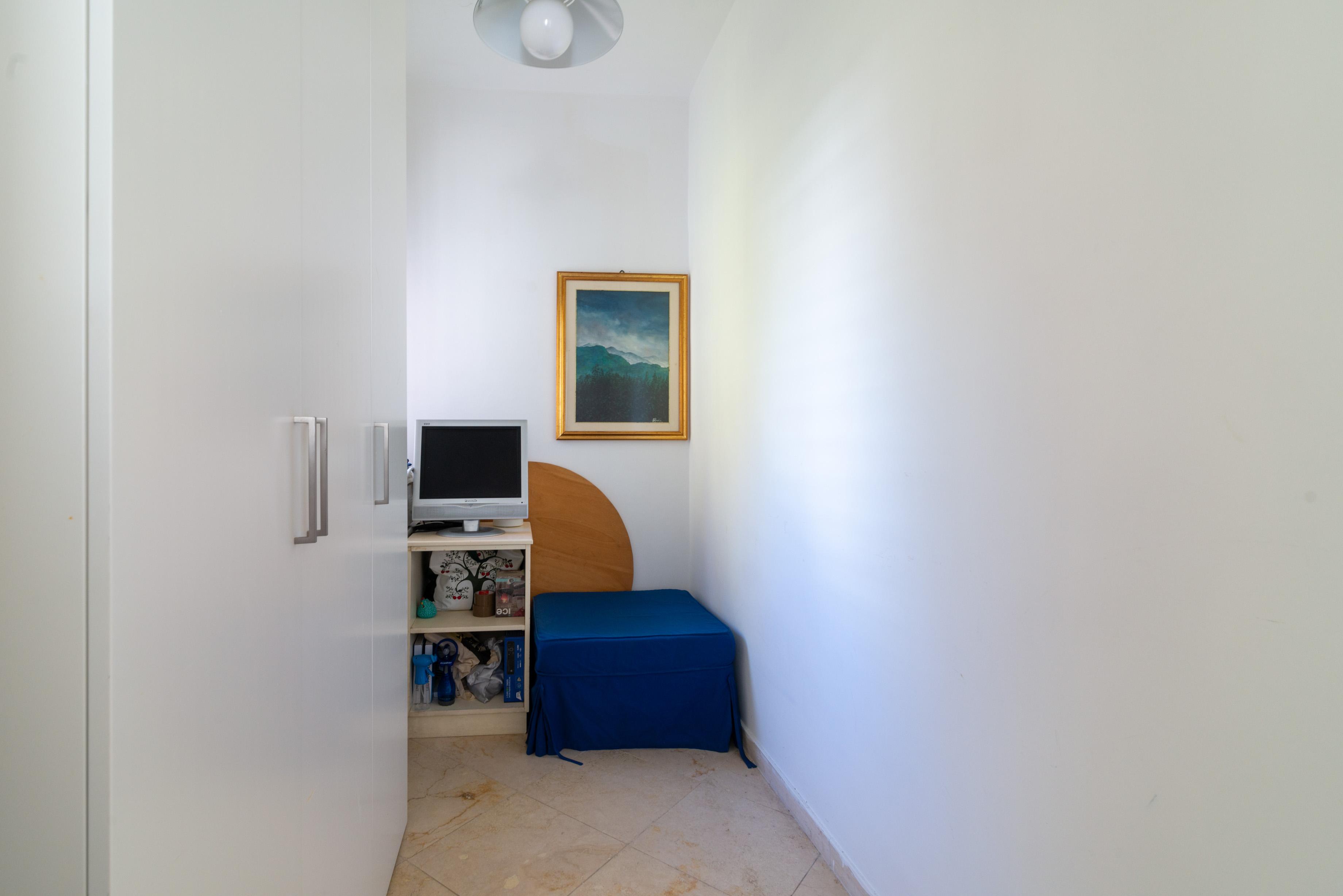 La camera matrimoniale principale, anch’essa munita di accesso all’esterno e di ben altre due finestre di cui una sul mare, ha un disimpegno con armadio e un bagno en suite ad uso esclusivo.