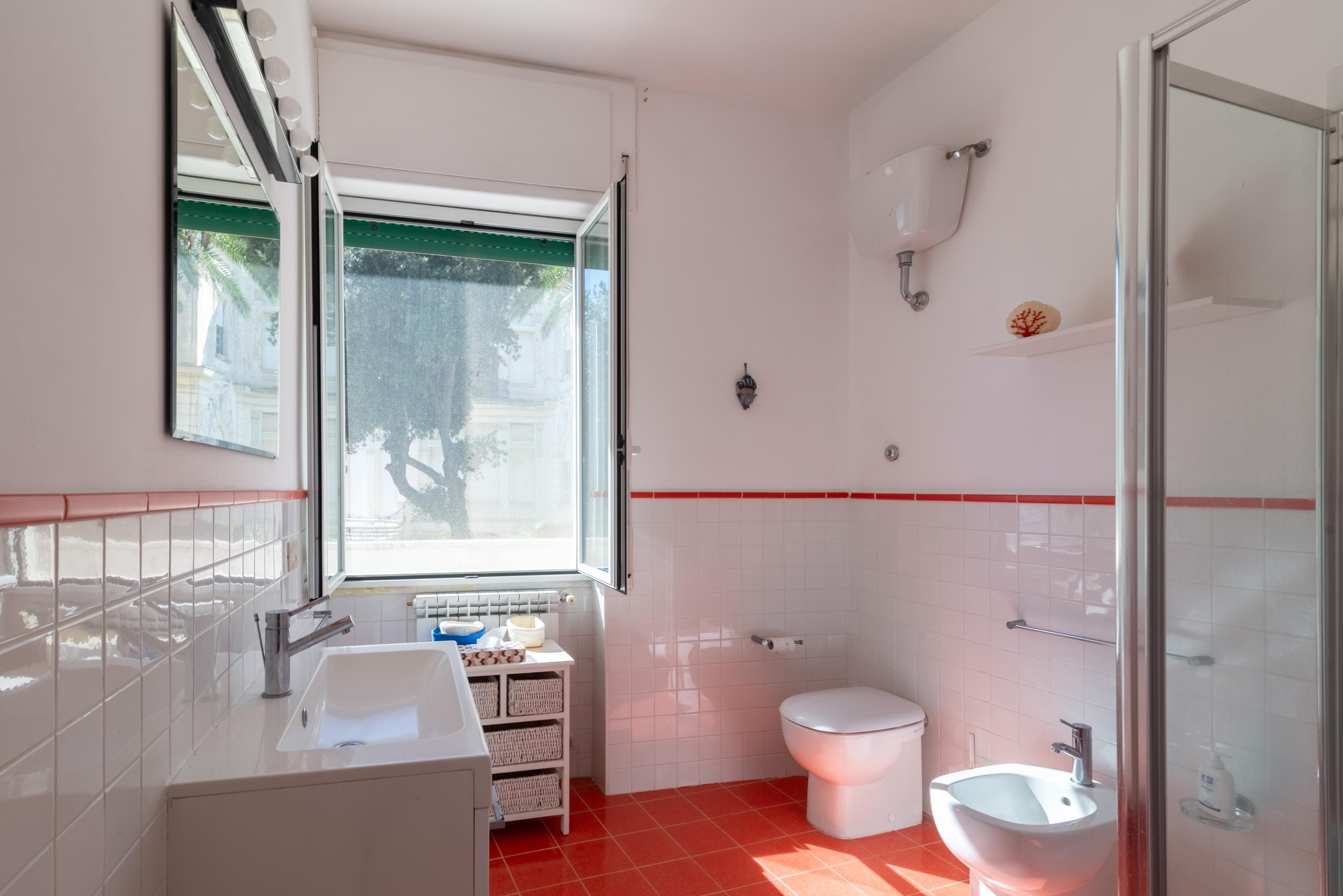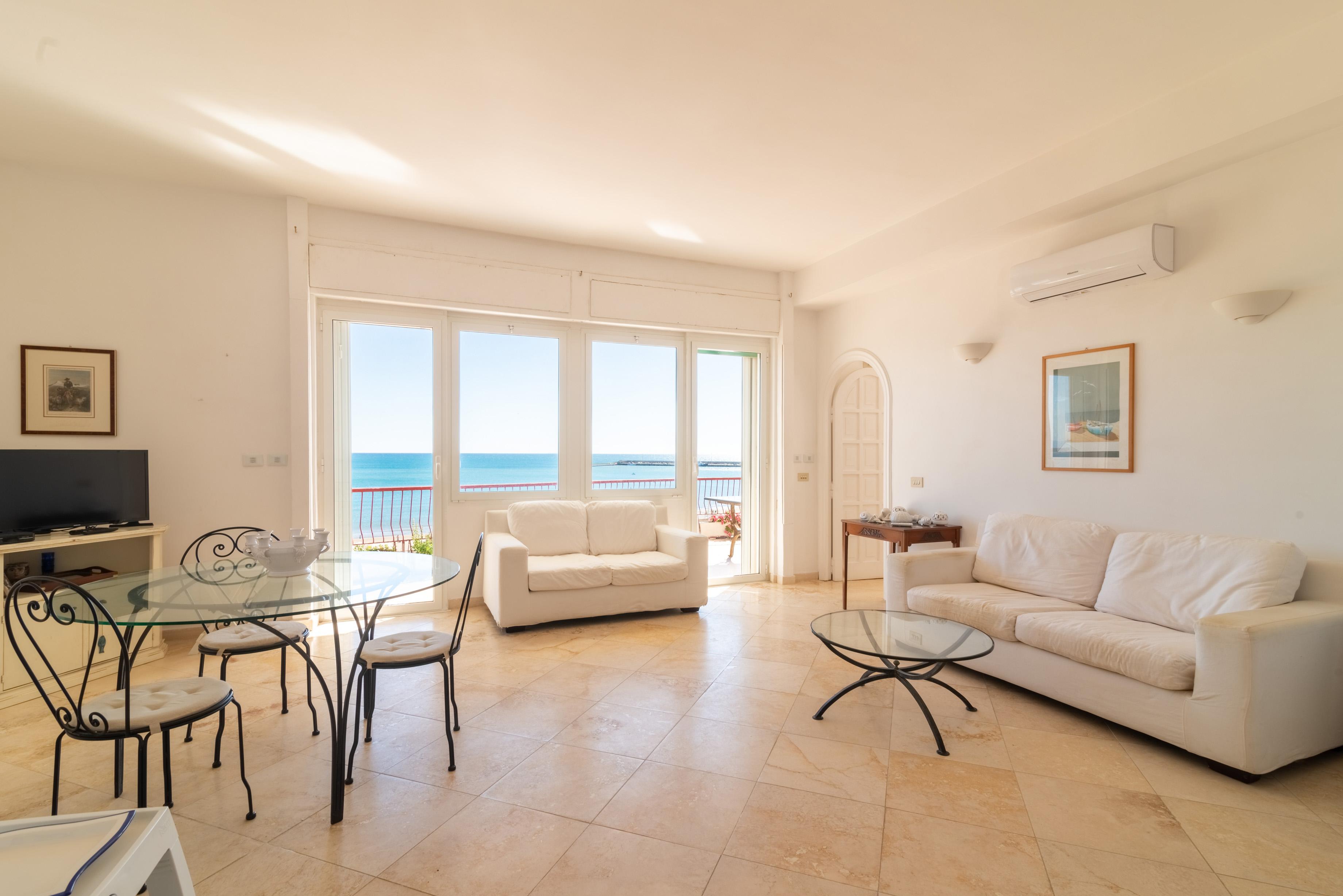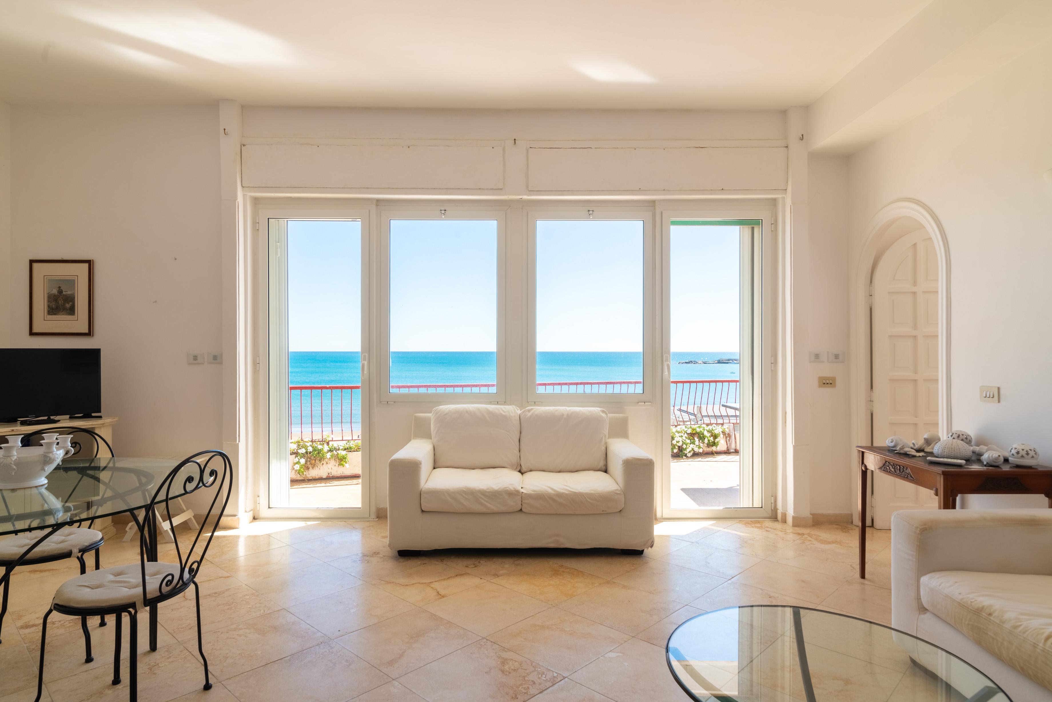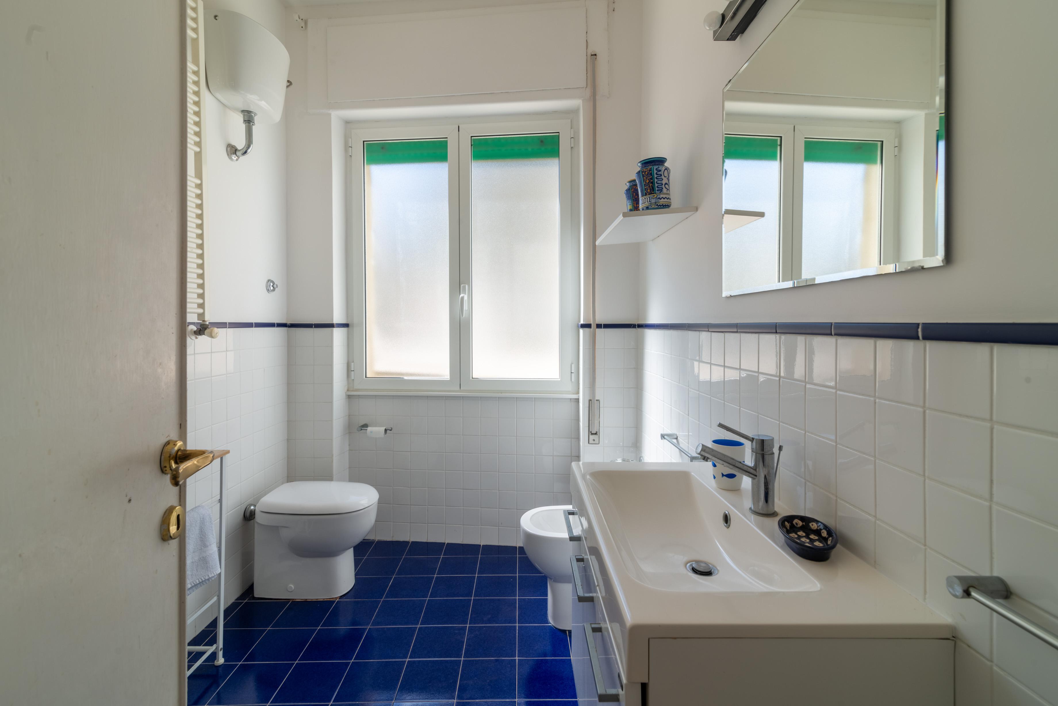 La camera matrimoniale principale, anch’essa munita di accesso all’esterno e di ben altre due finestre di cui una sul mare, ha un disimpegno con armadio e un bagno en suite ad uso esclusivo.